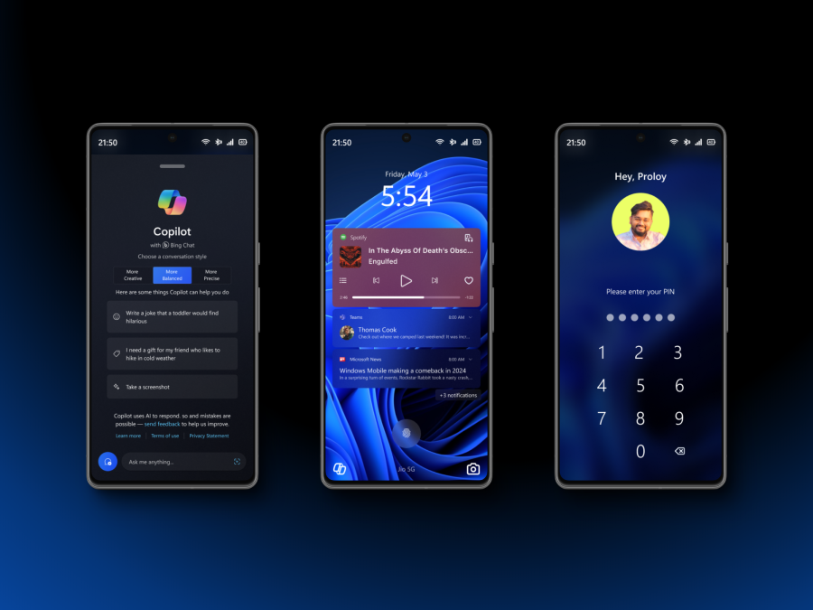 É divertido imaginar, apesar de ser doloroso aceitar que o Windows Phone nunca mais voltará. Um excelente designer gráfico, Proloy Karmakar, postou recentemente uma série de imagens conceituais para o “Windows 11 Mobile”, oferecendo uma lembrança do que a Microsoft potencialmente sacrificou. Utilizando elementos de design fluente, filosofias de design 3D do Windows 11 e texturas acílicas em camadas, Proloy habilmente nos oferece uma visão do que poderia ter sido o Windows 11 Mobile.