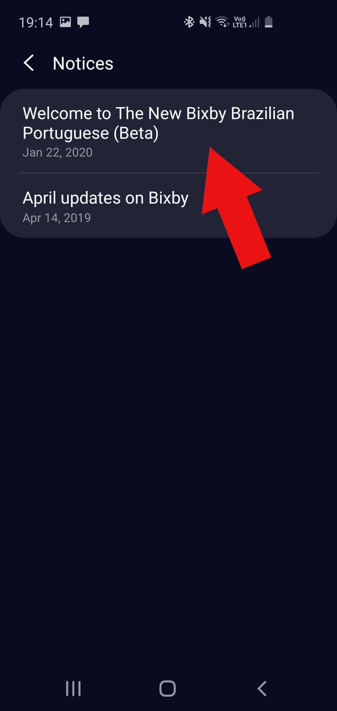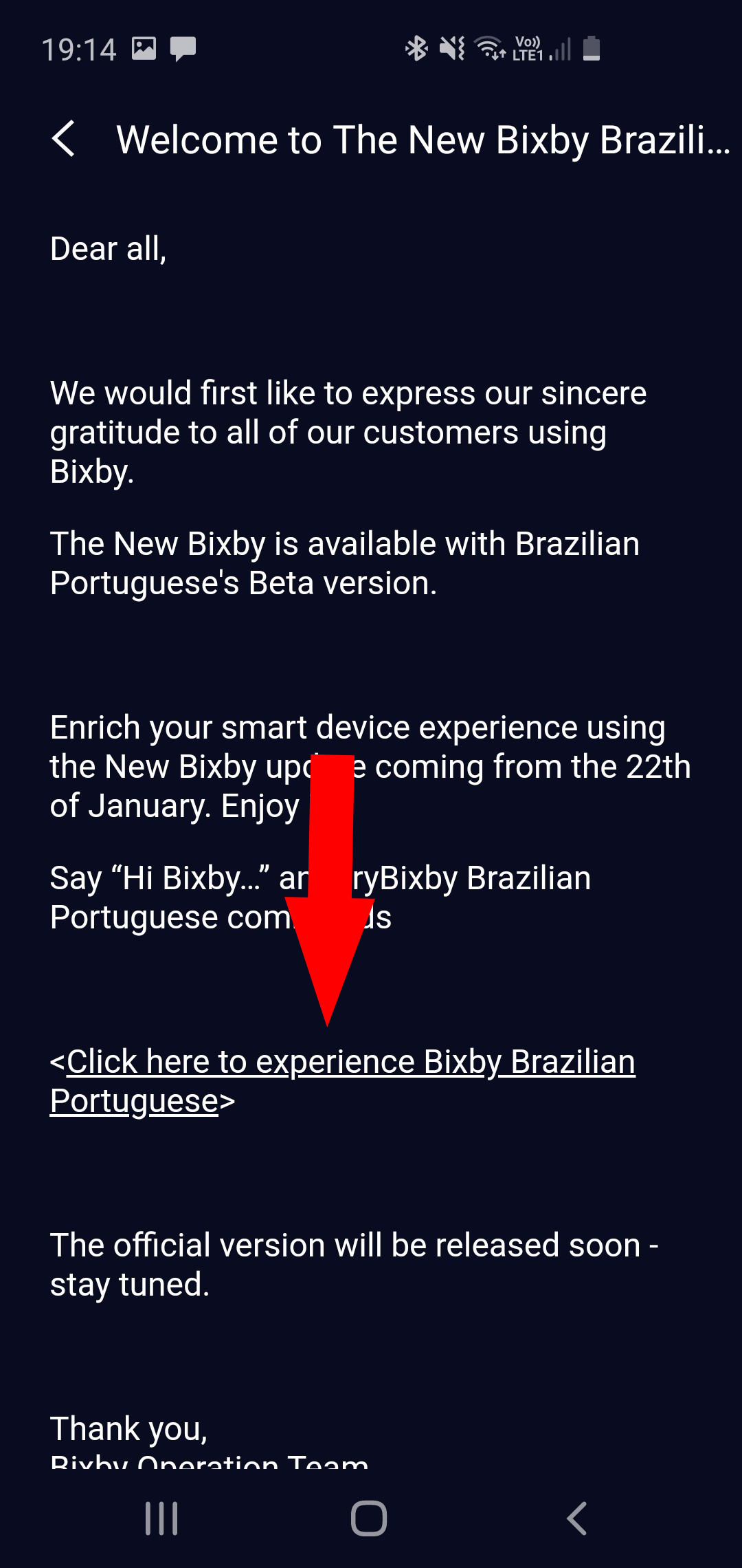 “Welcome to The New Bixby Brazilian Portuguese (Beta)”
