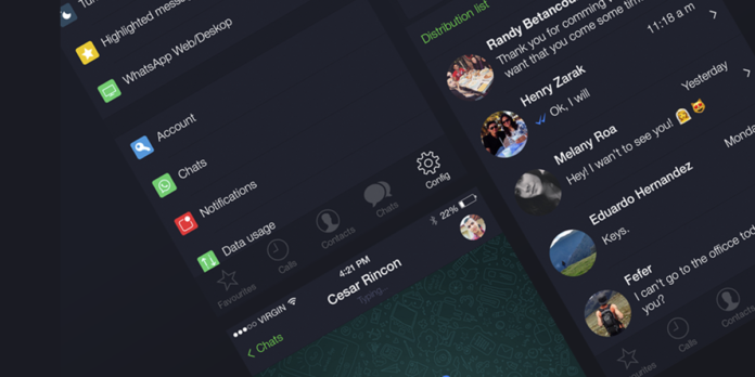 De fato, continua sendo uma novidade, que deve ser liberada muito em breve para os usuários do mensageiro. Não totalmente preto, mas com uma pegada mais “noite azulada”, vai ajudar a reduzir o consumo da bateria do celular, além disso, o recurso ajuda na adaptação de seus olhos durante o uso à noite. Deve haver uma opção padrão em conjunto com o sistema do celular, que ativará automaticamente o tema. Alguns usuários estão enfrentando um bug bem inesperado, que mostra o balão das mensagens no chat, no modo escuro, sendo que o tema noturno NÃO está ativado.Após vários betas, chegamos a conclusão que esta é a fase final do recurso.