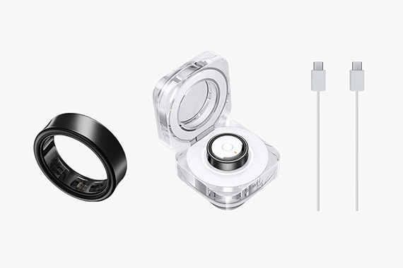 O Galaxy Ring tem um corpo de titânio, assim como o Galaxy Watch 7 Ultra. O anel tem 7mm e expessura de 2.6mm. Ele vem com uma base carregável de 361mAh, que leva até 80 minutos para carga total.
