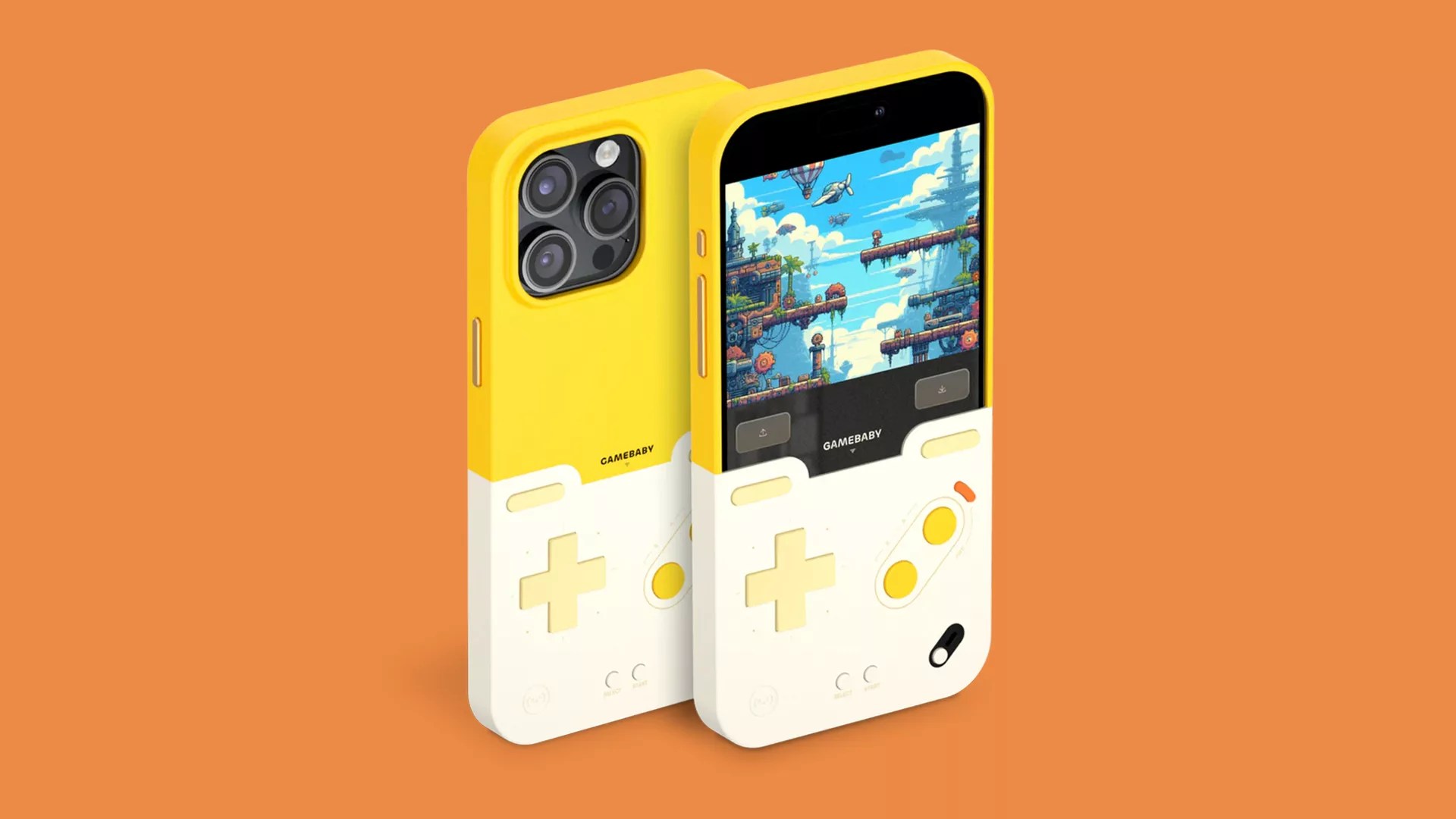 O Gamebaby possui um design em duas peças, incluindo um painel com botões físicos e outro para a parte superior do telefone. Os controles replicam a disposição clássica do Gameboy, com D-pad, botões A/B, Start/Select e até botões superiores para jogos mais avançados. O case é leve e portátil, garantindo proteção robusta para o dispositivo.