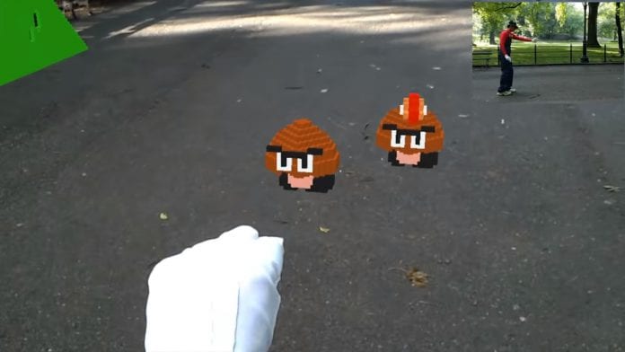 Abhishek Singh, desenvolvedor de aplicativos e Jogos para o Hololens, criou e experimentou sua nova versão do Super Mario Bros para o óculos de realidade Aumentada.