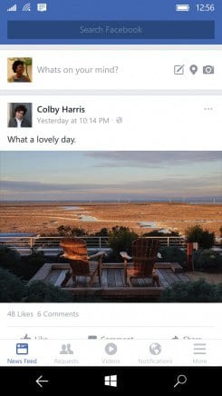 O aplicativo do Facebook foi lançado para o Windows 10 Mobile, atualizado e com o mesmo visual apresentado no iOS – o que já era esperado, já que o aplicativo veio do projeto Islandwood, que porta aplicativos da App Store para o Windows 10 Mobile de maneira fácil e rápida.